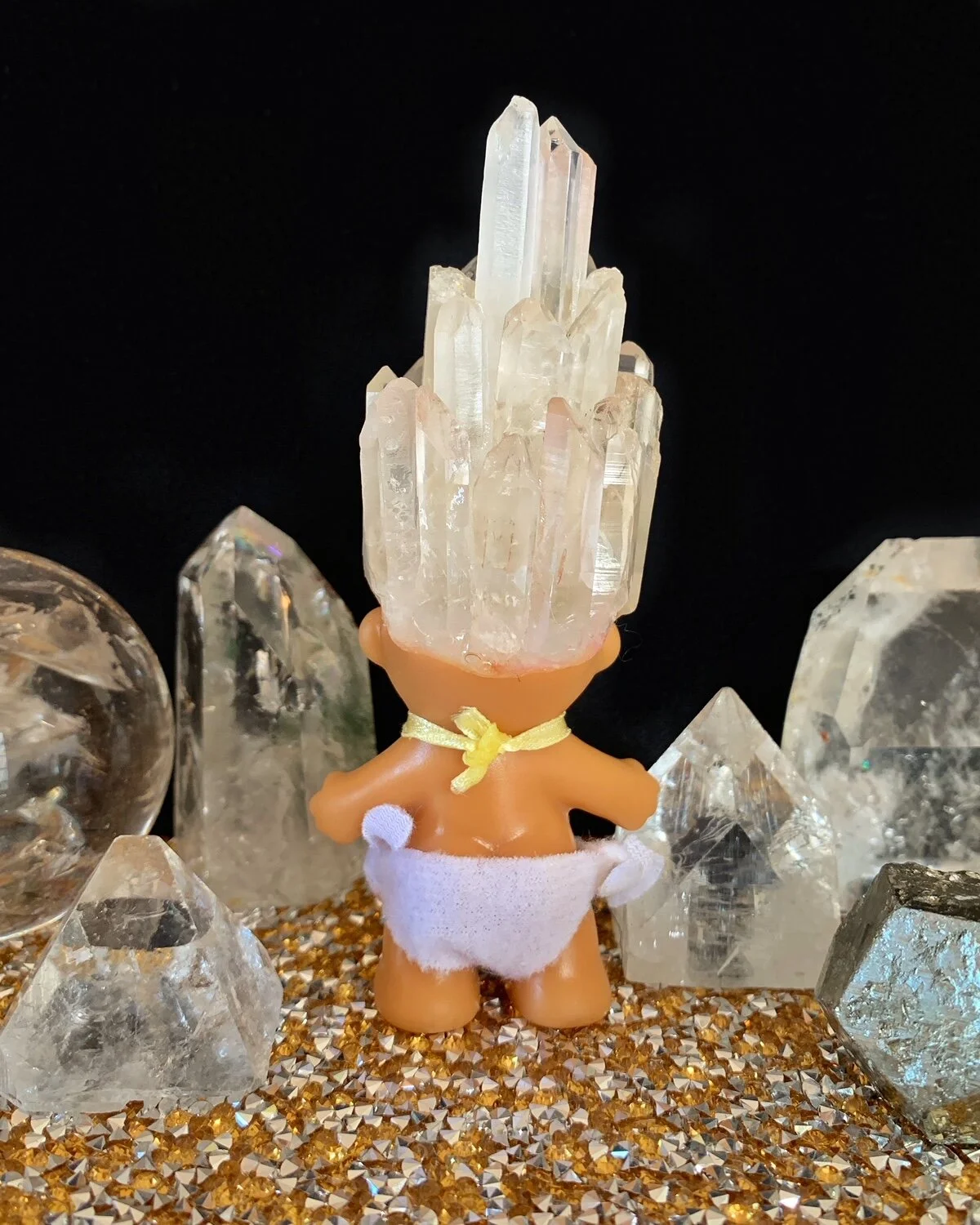 A limited edition of Crystal Trolls are available each month, only when artist is able to source vintage trolls and special crystal points used.